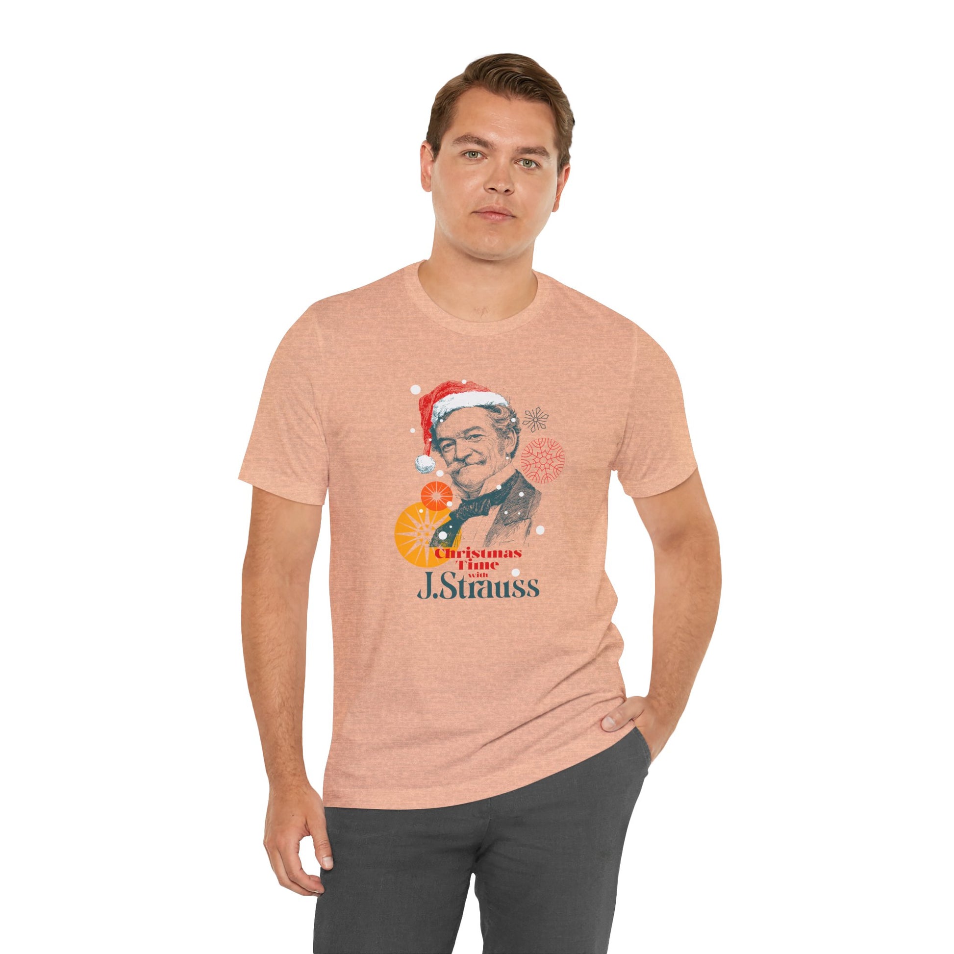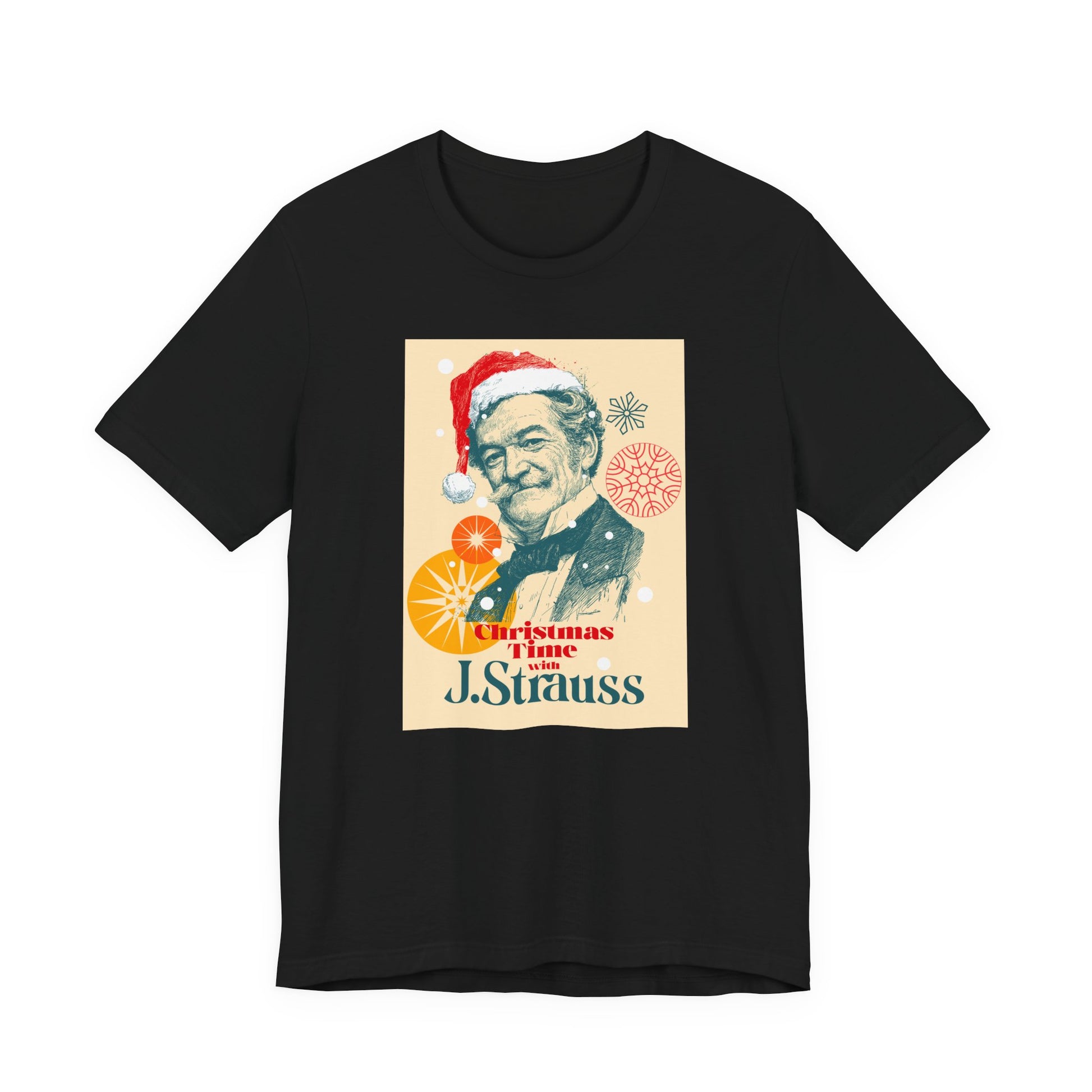 Christmas with Strauss - Holiday T-Shirt, Santa Shirt, Strauss with Santa Hat T-Shirt, Classical Music Christmas Shirt