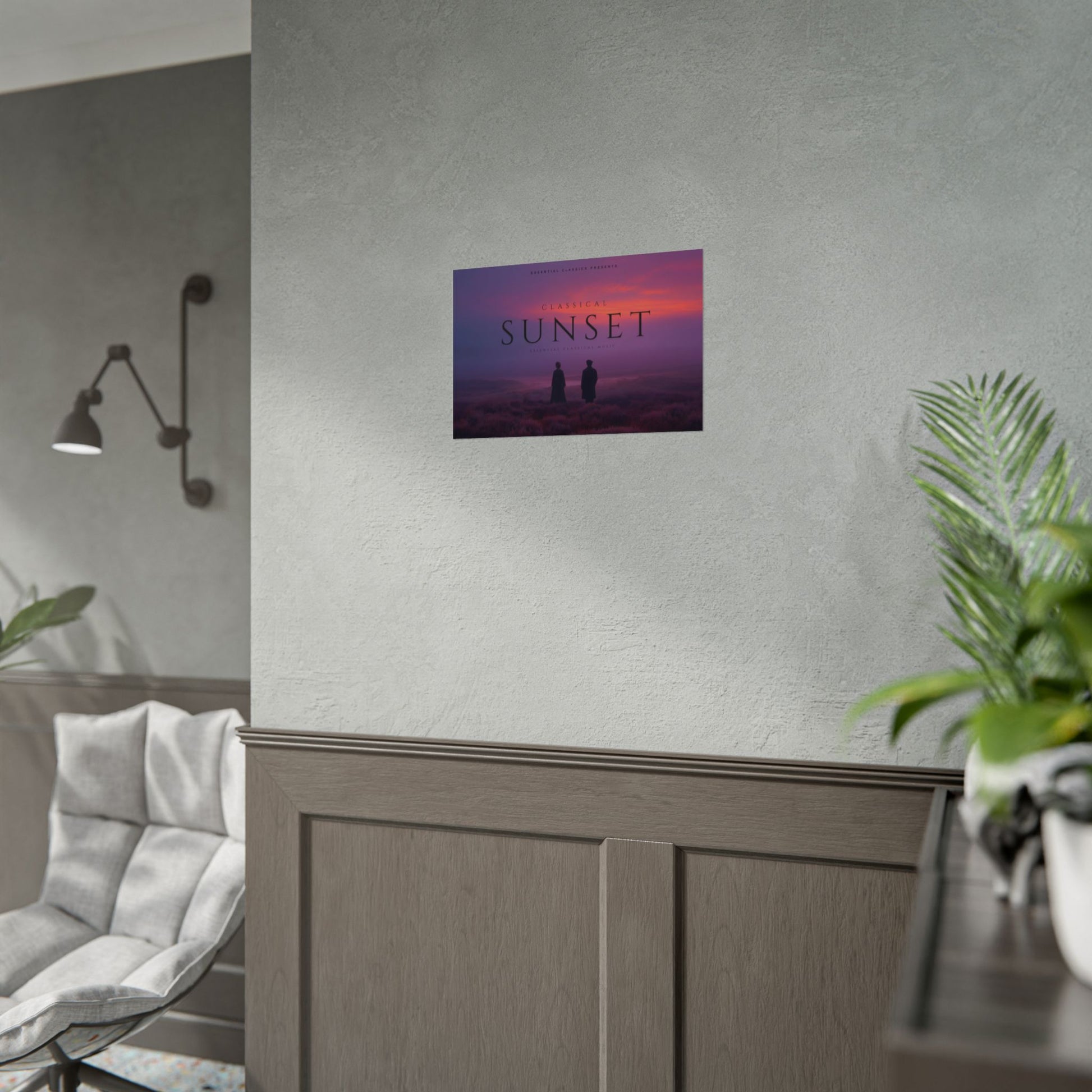 Find yourself in a serene musical sunset landscape with these classical music inspired posters. Perfect for winding down after a long day, this artwork exudes warmth, calm, and gentle reflection. Ideal for music enthusiasts and those who appreciate a peaceful ambiance.