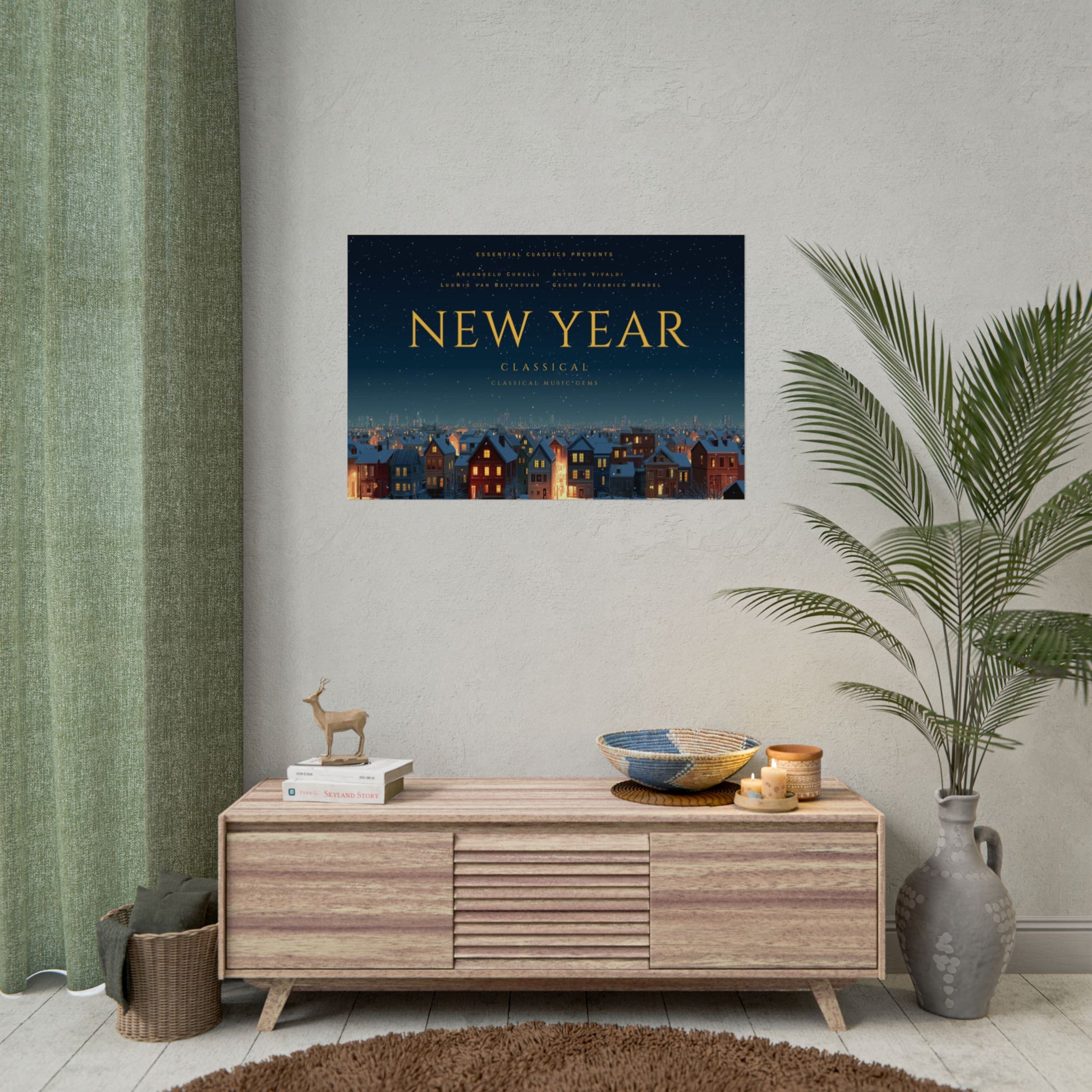 Happy New Year - Classical Music Celebration Poster, Night Sky Print, Starry Night Poster, New Year's Resolution Poster