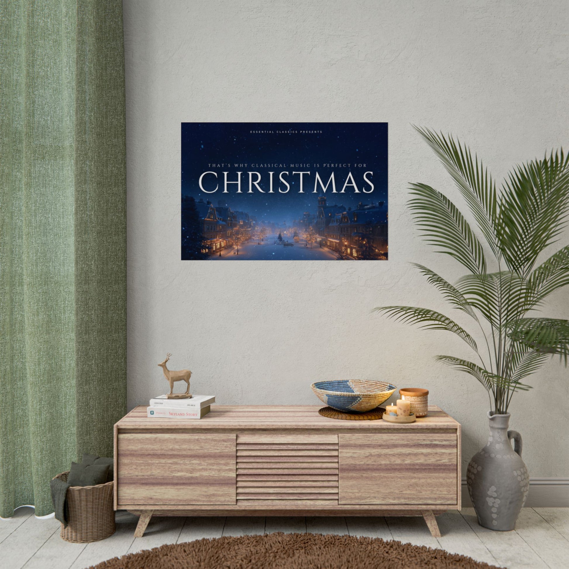 This classical music-themed poster captures the magic and warmth of Christmas and is a perfect addition to your holiday decor. Perfect for music lovers and those who appreciate the nostalgic and serene atmosphere of the holiday season. Ideal for decorating homes during Christmas time.